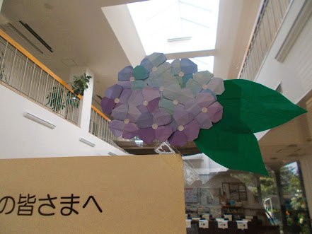 職員一同で協力して作ったアジサイの花とカタツムリです!